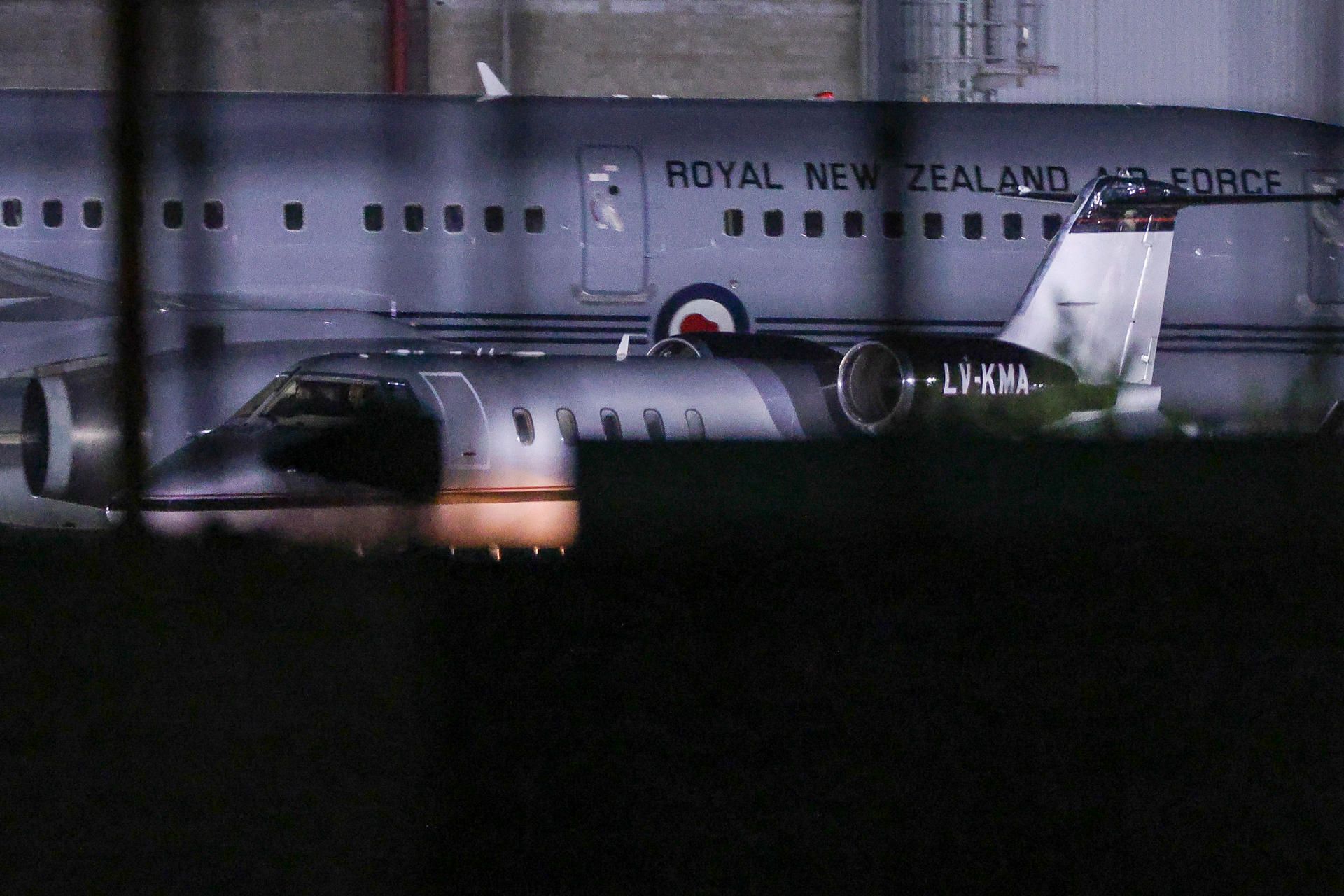 El avión que traslada a Nahuel Gallo desde Caracas tras su liberación aterriza en el Aeropuerto Internacional de Ezeiza en la madrugada de este lunes. Gallo, detenido en Venezuela desde el 8 de diciembre de 2024, fue liberado este domingo por las autoridades del país caribeño. EFE/ Juan Ignacio Roncoroni