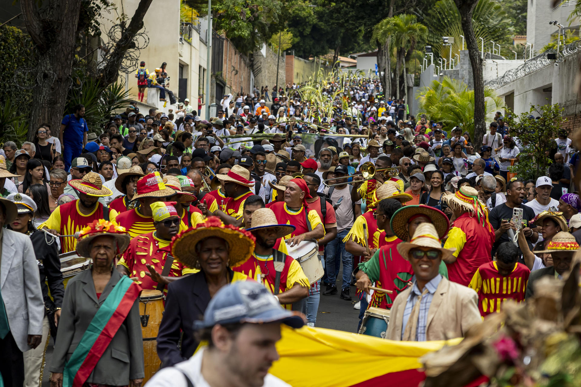 Los ‘palmeros’ que participaron en la actividad -niños, hombres y adultos mayores- hicieron una procesión desde Sabas Nieves, la principal entrada del cerro hasta llegar a la Iglesia San José de Chacao.