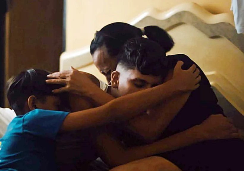 Fanny Lozada abraza a sus dos nietos, Moisés y su hermano de diez años. (G. DELGADO)