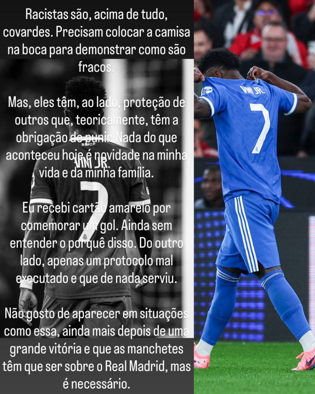 «Recibí tarjeta amarilla por celebrar un gol. Aún sin entender el porqué de eso. Por otro lado, apenas un protocolo mal ejecutado y que no sirvió de nada. No me gusta aparecer en situaciones como esta, más aún después de una gran victoria y cuando los titulares deberían ser sobre el Real Madrid, pero es necesario», sentenció.
