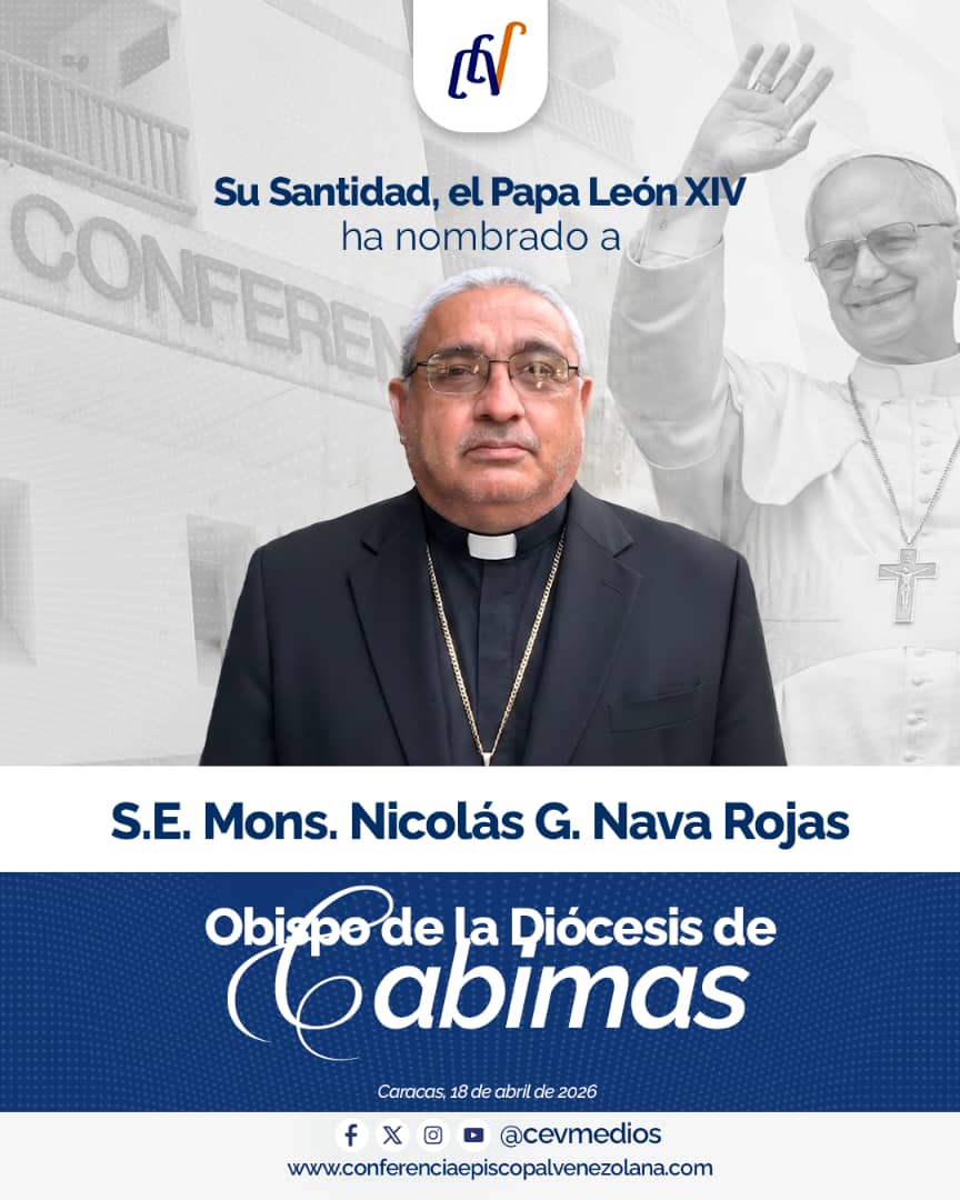 La mañana de este 18 de abril, la Santa Sede ha hecho público que el Papa León XIV ha nombrado a S.E. Mons. Nicolás Gregorio Nava Rojas como el nuevo Obispo de la Diócesis de Cabimas, en el estado Zulia.