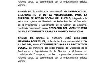 El régimen chavista oficializó la modificación de la estructura organizativa del Ministerio del Despacho de la Presidencia, eliminando formalmente la denominación del «Viceministerio para la Suprema Felicidad Social del Pueblo». La medida quedó establecida en la reciente Gaceta Oficial Extraordinaria N°6.984.