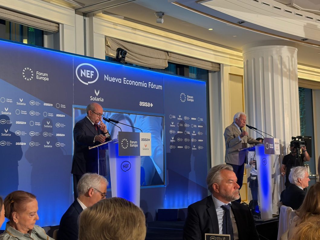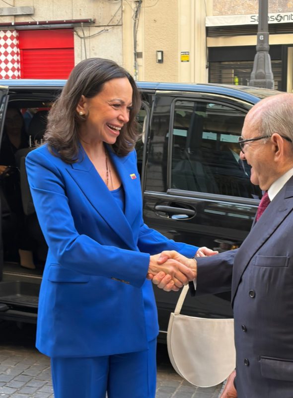 La líder opositora venezolana y premio Nobel de la Paz María Corina Machado, al encuentro organizado en Madrid por el centro de pensamiento Nueva Economía Fórum.