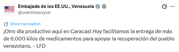 Estas acciones de EEUU buscan aliviar la escasez de medicinas que afecta a los sectores más vulnerables de la sociedad venezolana.