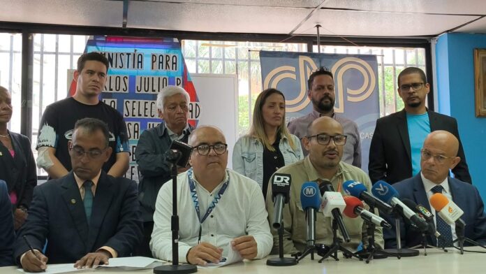 Desde la sede del Colegio Nacional de Periodista el comunicador social y defensor de DDHH, Carlos Julio Rojas, reveló al país como luego de siete semanas de espera, le fue anunciada la negativa en su solicitud de amnistía, entrando en la denominada lista de la “selectividad perversa” donde centenares de presos políticos continúan tras las rejas o quienes fueron excarcelados tienen encima fuertes medidas cautelares siendo acusado de delitos dantescos.