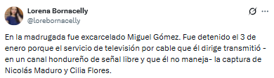 En horas de la madrugada de este sábado fue excarcelado Miguel Gómez, director de un servicio de televisión por cable, quien permanecía detenido desde el pasado 3 de enero.