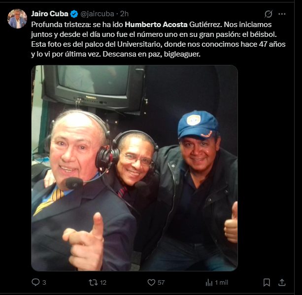 La partida de Acosta deja un profundo vacío en las salas de redacción y en la memoria de millones de aficionados que crecieron siguiendo sus crónicas, transmisiones y análisis técnicos sobre “el deporte rey” en Venezuela: el béisbol.