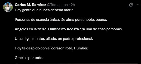 Colegas y profesionales del medio lamentaron la noticia y recordaron a Acosta no solo como un periodista riguroso, sino como un mentor para las nuevas generaciones. Su compromiso con la ética periodística y la habilidad para transmitir con sencillez la complejidad del juego lo convirtieron en una figura insustituible.