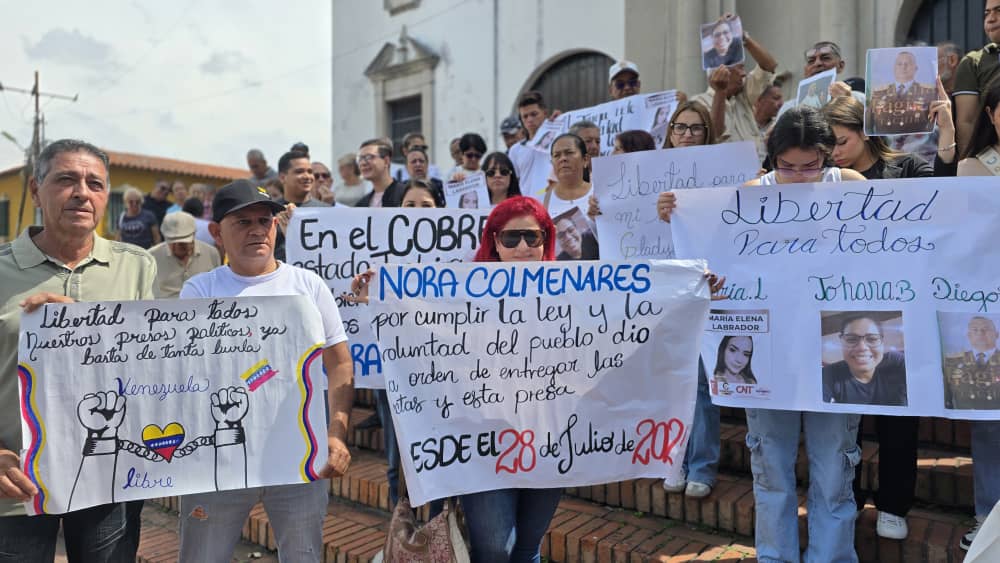 Este este sábado 7 de febrero, familiares de presos políticos en el estado Táchira, acompañados por representantes de diversos sindicatos, se congregaron en las inmediaciones de la Catedral de San Cristóbal para exigir justicia y libertad para sus allegados.