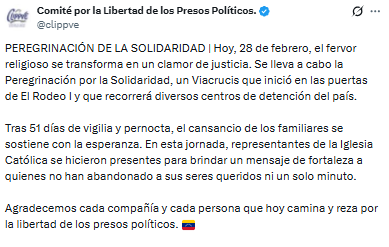 El Comité por la Libertad de los Presos Políticos inició este 28 de febrero un viacrucis que partió desde El Rodeo I.