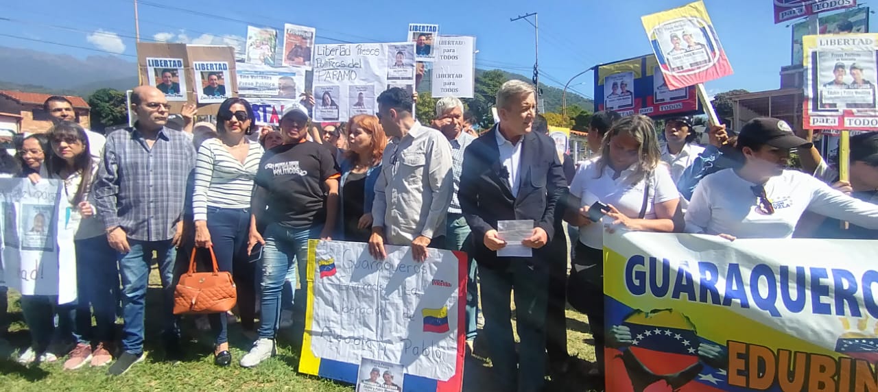 A las afueras del Circuito Judicial Penal del estado Mérida, familiares y miembros de las comunidades de Mucuchíes y Guaraque, así como la sociedad civil y abogadas del Foro Penal capítulo Mérida, se pronunciaron este viernes para y exigir la liberación de los ciudadanos que aún permanecen detenidos por motivos política y visibilizar la crítica situación de los derechos humanos en la entidad.