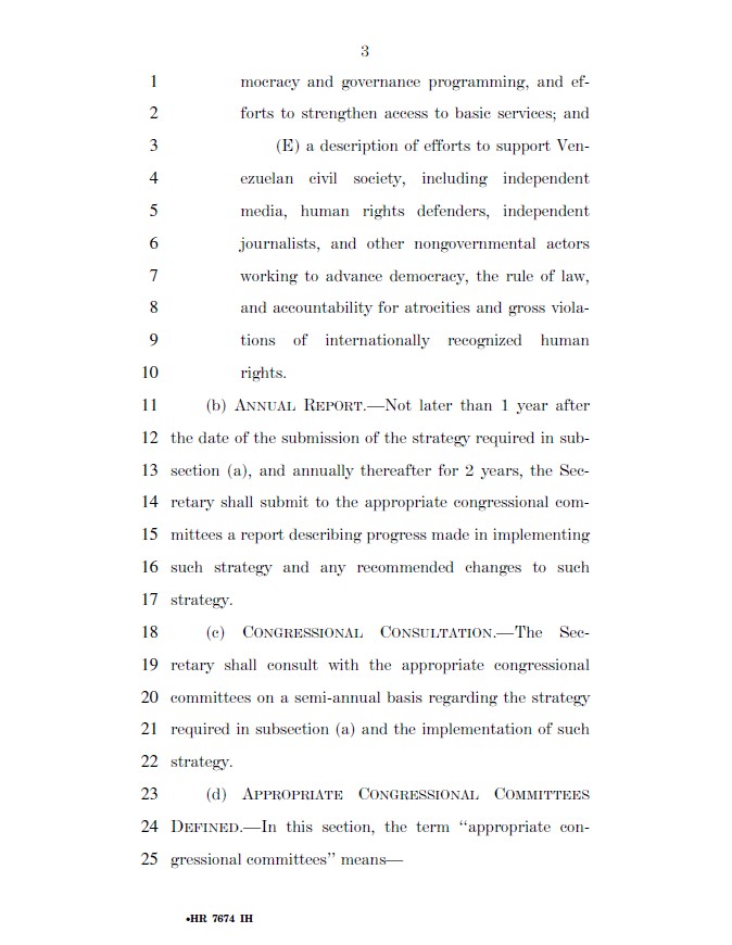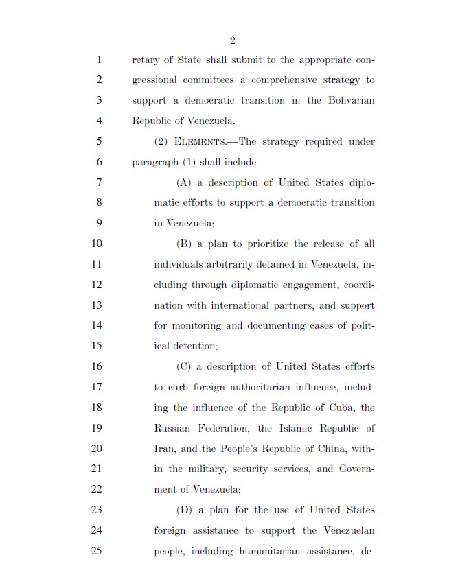 De acuerdo con el texto original del Congreso al que tuvimos acceso, la propuesta no se enfoca únicamente en el ámbito diplomático. También ordena al gobierno estadounidense garantizar programas de asistencia para fortalecer el acceso a servicios básicos y blindar a la sociedad civil.