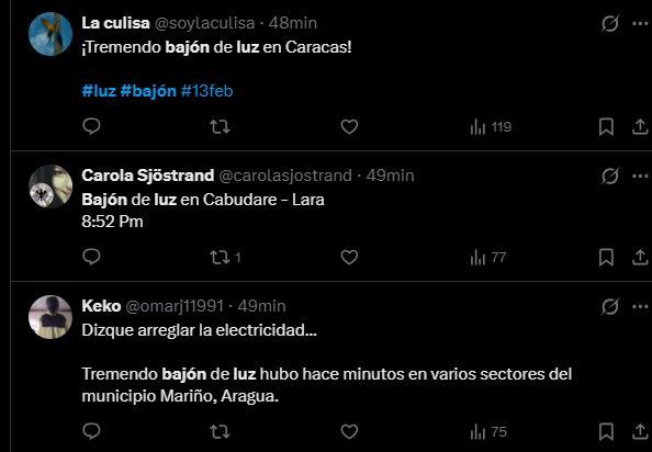 - Zulia: En San Francisco, los usuarios reportaron que tras el «bajón», algunos sectores quedaron sin suministro y denunciaron hasta 4 horas de racionamiento previo.
