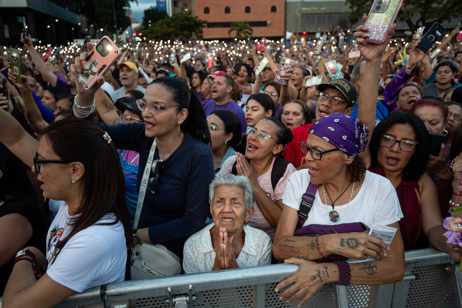 La imagen fue trasladada en un recorrido por distintas zonas de la capital venezolana, mientras los fieles acompañaban su paso vistiendo ropa y prendas moradas, color que simboliza la penitencia y la preparación espiritual.