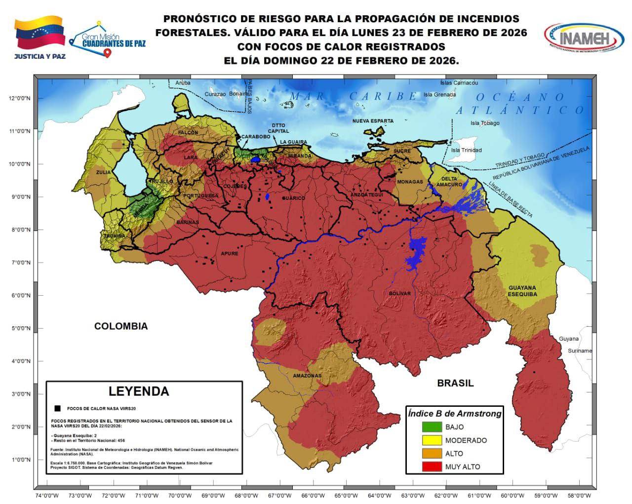 No obstante, el organismo resaltó que se observan mantos nubosos asociados a lluvias o lloviznas en áreas al sur de Bolívar y Amazonas.