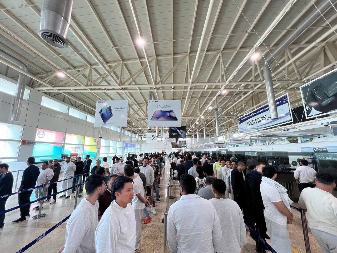 El avión aterrizó en el Aeropuerto Internacional Simón Bolívar de Maiquetía, que sirve a Caracas, donde fueron recibidos por funcionarios policiales y autoridades, incluyendo al diputado chavista Pedro Infante, primer vicepresidente del Parlamento controlado por el régimen chavista, y también presidente del programa migratorio del chavismo.