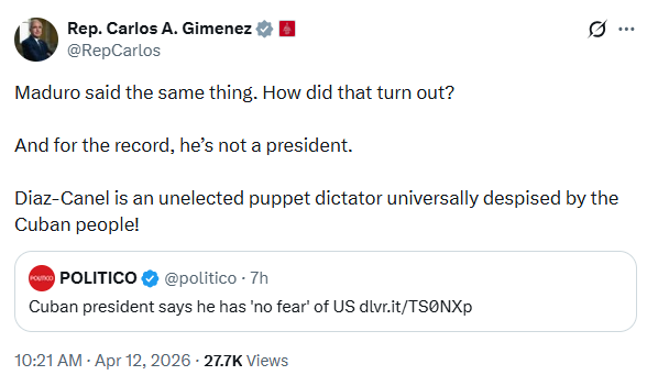 Pese a que cree que Estados Unidos no lanzaría una operación contra el régimen cubano, el congresista republicano Carlos Giménez lanzó una seria advertencia sobre el dictador.