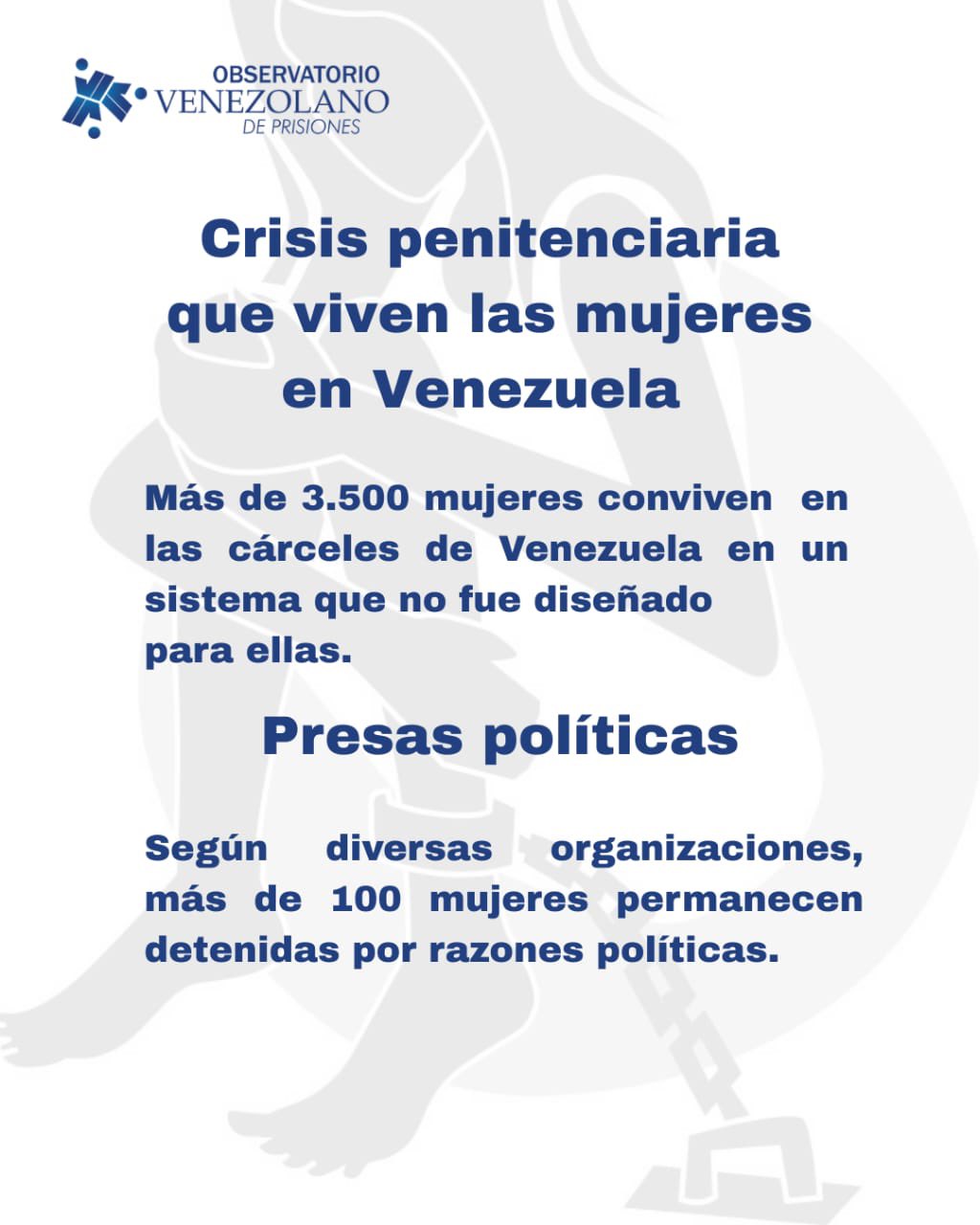 A través de un mensaje publicado en su cuenta oficial en la red social X, la organización no gubernamental advirtió que detrás de esta cifra existe una realidad crítica dentro del sistema penitenciario venezolano, donde las mujeres enfrentan múltiples vulneraciones mientras cumplen condena o esperan sentencia.