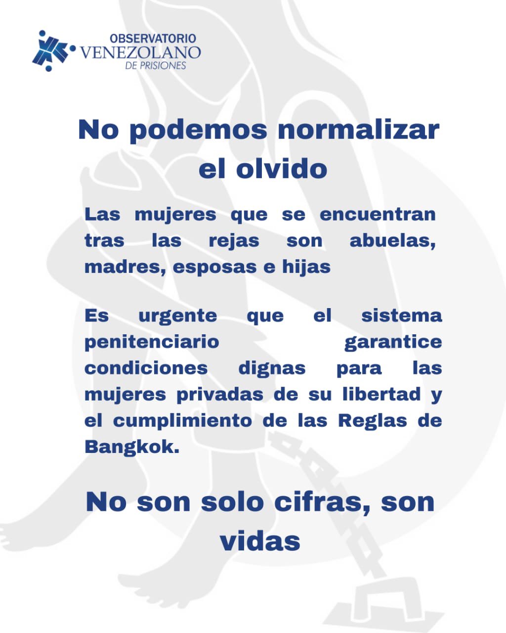 El OVP también enfatizó que, para las mujeres que permanecen tras las rejas, el 8 de marzo no es una fecha de celebración, sino un día para exigir respeto a sus derechos y visibilizar su situación.