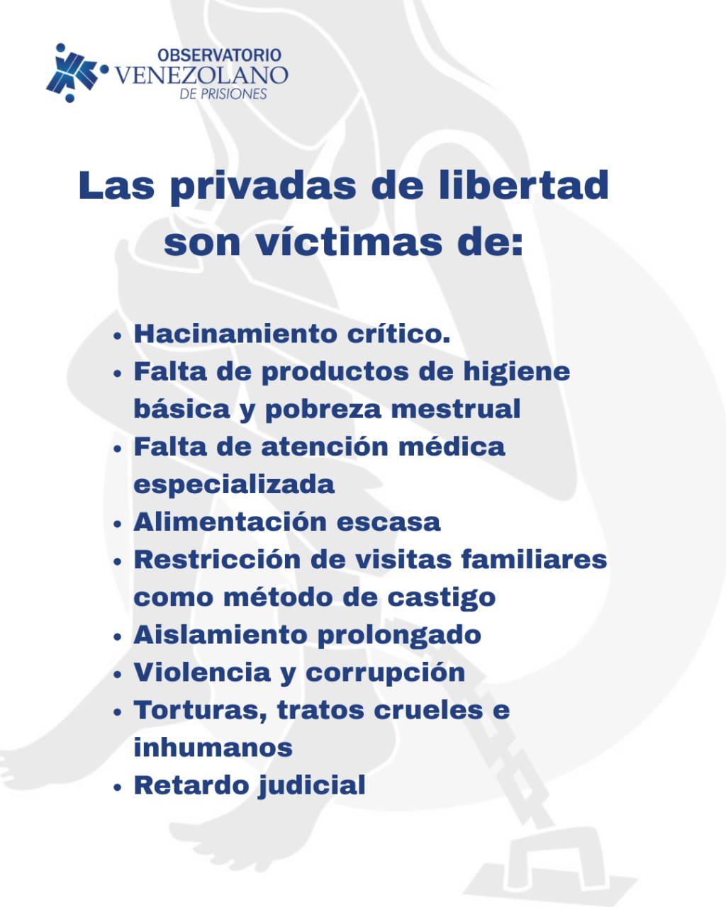 El pronunciamiento del OVP coincidió con la conmemoración del Día Internacional de la Mujer, una fecha en la que organizaciones y activistas han denunciado la situación de las mujeres encarceladas en el país.