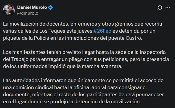 De acuerdo con un reporte del periodista Daniel Murolo en su cuenta de X, la marcha había varias calles con destino a la sede de la Inspectoría del Trabajo, donde los manifestantes tenían previsto consignar un pliego de peticiones relacionadas con reivindicaciones salariales y condiciones laborales.