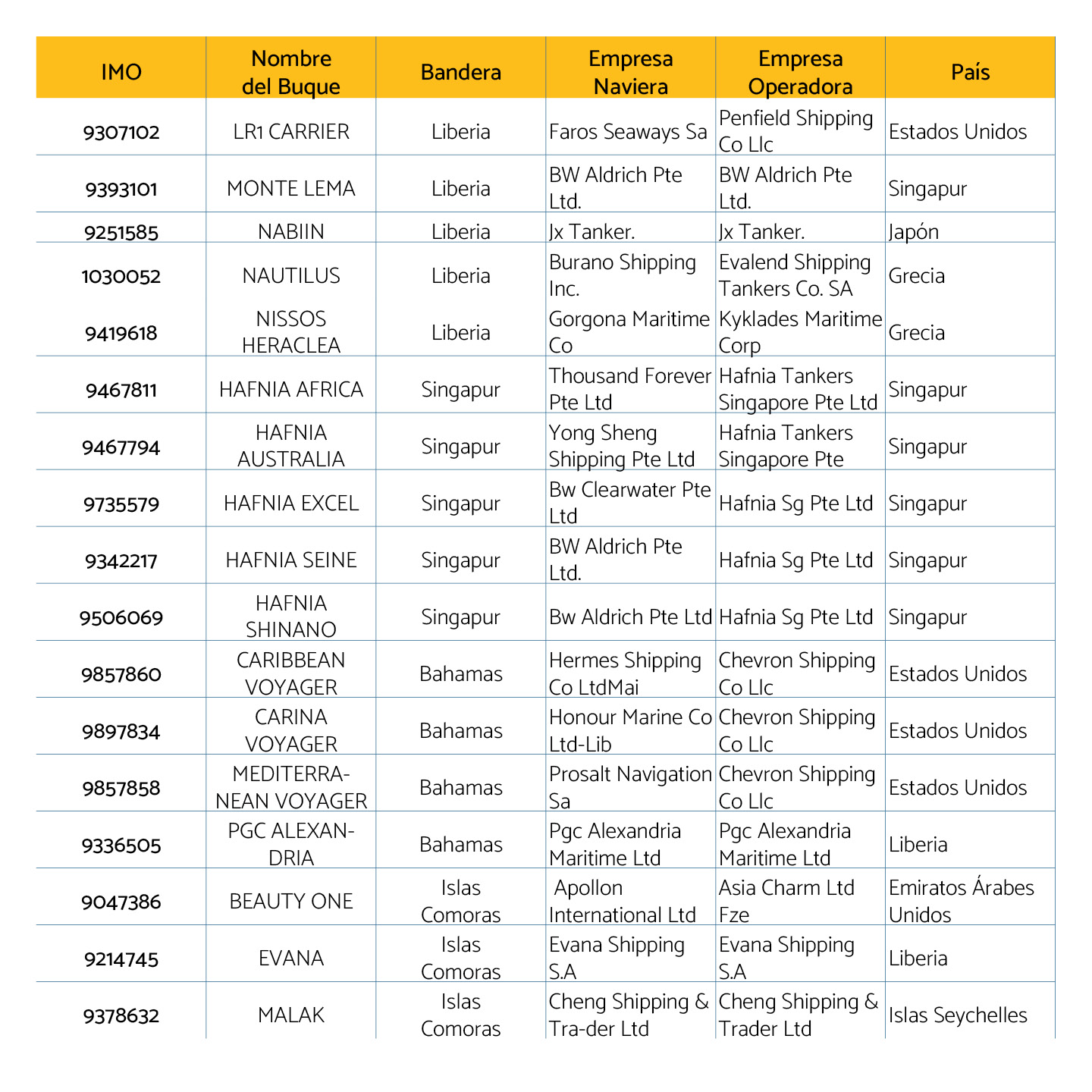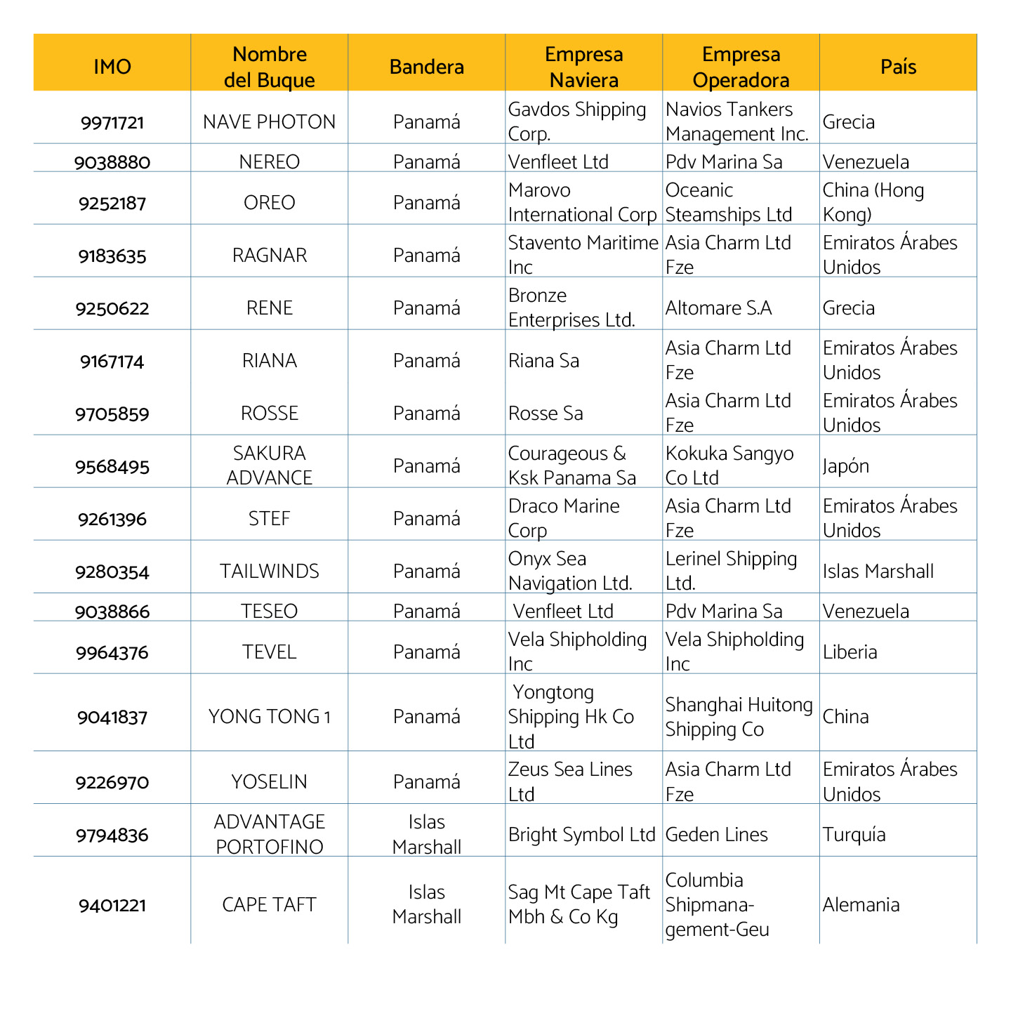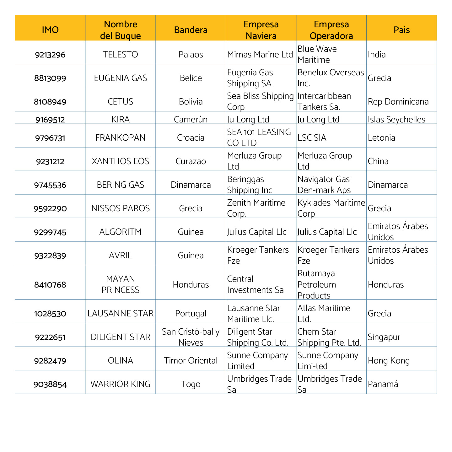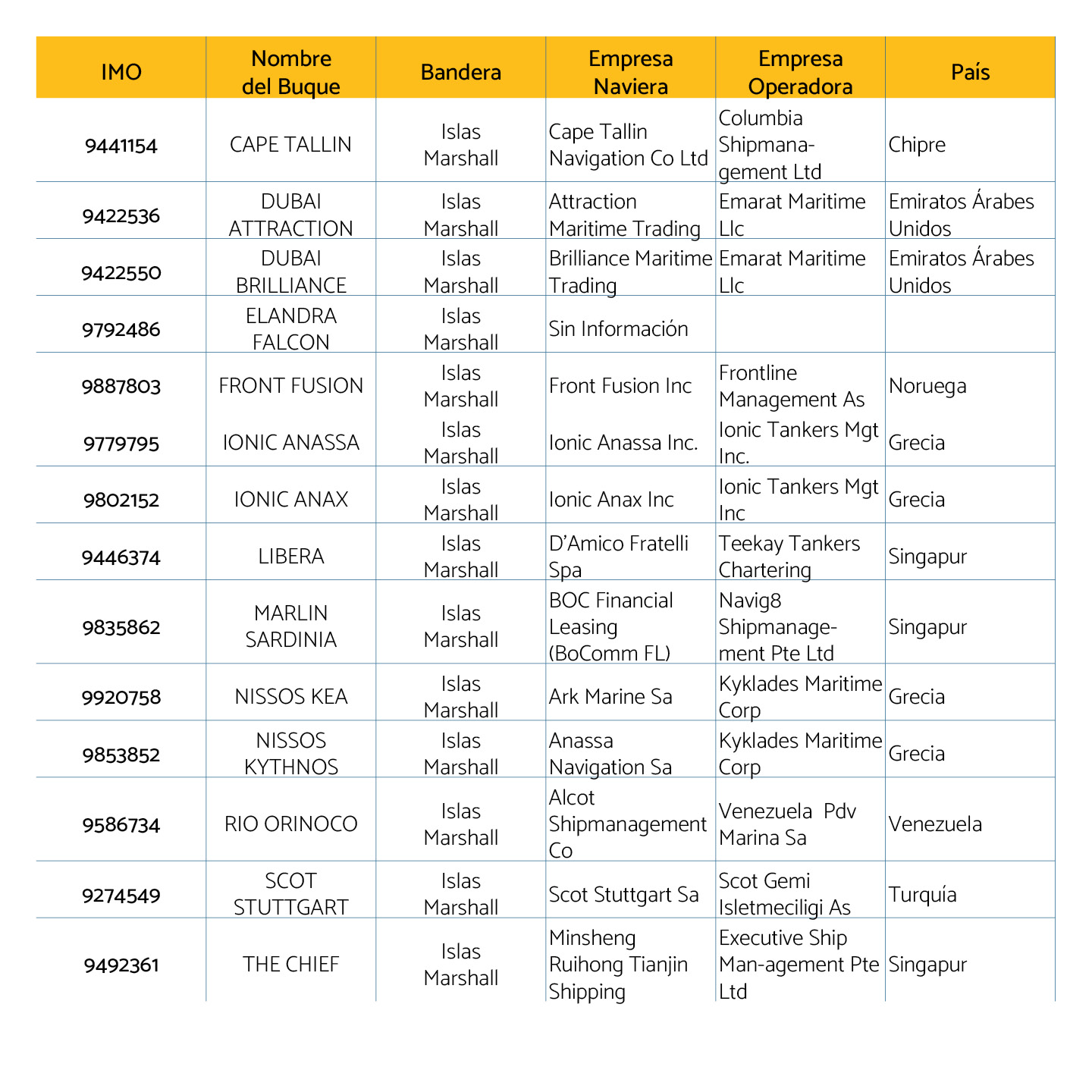 El número de embarcaciones con bandera de Venezuela no ha variado en todos los meses de monitoreo, la mayoría hacen cabotaje entre los puertos petroleros domésticos de Petróleos de Venezuela.