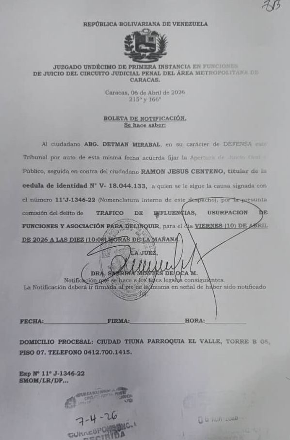 Funcionarios del Juzgado Undécimo de Primera Instancia del Circuito Judicial Penal del Área Metropolitana de Caracas informaron al periodista Ramón Centeno que no hay despacho pese a que la jueza Sabrina Montes de Oca le había citado previamente en una boleta de notificación para este viernes.