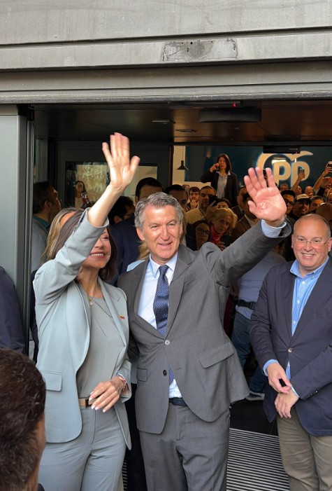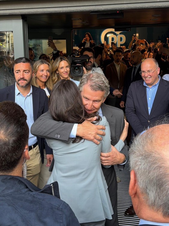 A las puertas del PP en Madrid salieron a recibirla también otros altos cargos del partido. Además de Feijóo, el secretario general, Miguel Tellado, la portavoz del PP en el Senado, Alicia García, y la diputada Cayetana Álvarez de Toledo, amiga de Machado.